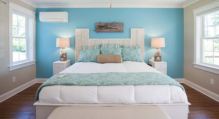 Vị trí lắp đặt điều hòa trong phòng ngủ tối ưu nhất là đây. Điều hòa chỉ nên được đặt bên trái hoặc bên phải của giường ngủ.