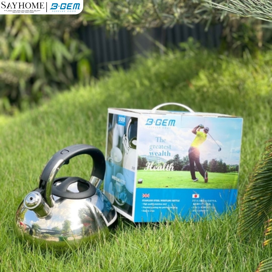Sayhome - Solution for your home sẽ mang đến cho gia đình bạn Ấm đun nước huýt sáo B-Gem 3L là loại ấm an toàn nhất để đun nước. Ấm được làm bằng chất liệu inox cao cấp không gỉ đảm bảo điều kiện tốt nhất cho sức khỏe con người.. Hình dáng truyền thống của ấm B-Gem giúp làm nóng nước cực nhanh và an toàn. Mặt trong sáng bóng giúp kháng khuẩn và bụi bẩn, dễ dàng vệ sinh.