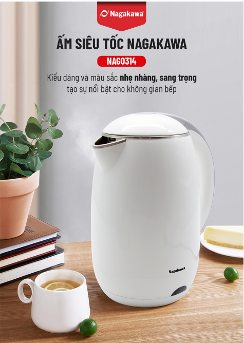 Ấm Siêu tốc Nagakawa NAG0314 - 1.8L có kích thước nhỏ gọn, kiểu dáng và màu sắc nhẹ nhàng nhưng sang trọng tạo nên sự khác biệt trong ngôi nhà của bạn.