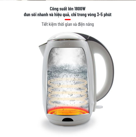 Ấm siêu tốc Nagakawa NAG0314 có dung tích 1.8 lít và thiết kế với công suất lên đến 1800W đun sôi nhanh và hiệu quả, chỉ trong vòng 3-5 phút, tiết kiệm thời gian và điện năng tiêu thụ tối đa cho người sử dụng.