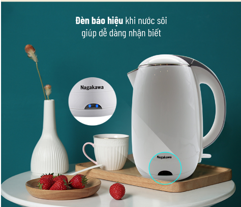 Ấm siêu tốc Nagakawa NAG0314 có đèn báo tự động bật tắt, báo từ khi bắt đầu cho đến lúc kết thúc quá trình đun sôi nước, giúp bạn dễ dàng nhận biết được nước đã sôi hay chưa mà không cần mở nắp.