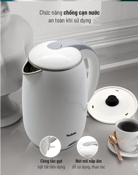 Sản phẩm là lựa chọn phù hợp cho gia đình từ 3 – 4 người. Nagakawa NAG0314 là bình đun nước siêu tốc có Rơ le kép giúp tự ngắt khi quá nhiệt hay khi nước sôi, để bạn không cần phải kiểm soát quá trình hoạt động đun sôi đang diễn ra, vừa tiết kiệm thời gian, vừa tiện ích cho người sử dụng và đảm bảo an toàn.