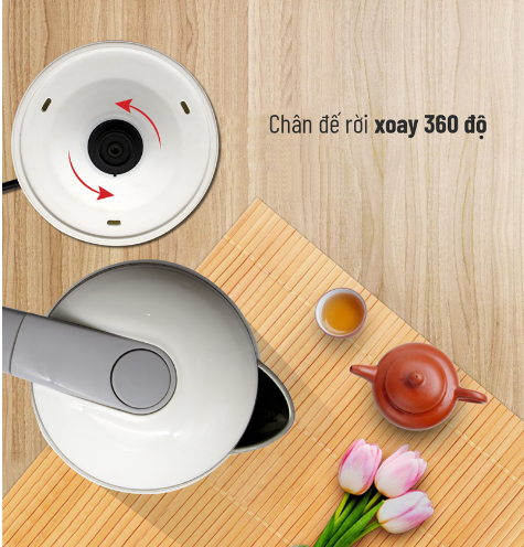 Ấm siêu tốc Nagakawa NAG0314 có thể dễ dàng nhấc bình lên và đặt ở mọi góc nhờ chân đế thiết kế rời có thể xoay 360 độ. Tay cầm bằng nhựa cách nhiệt an toàn và chắc chắn, rất dễ dàng cho việc di chuyển bình đun khi cần rót nước.