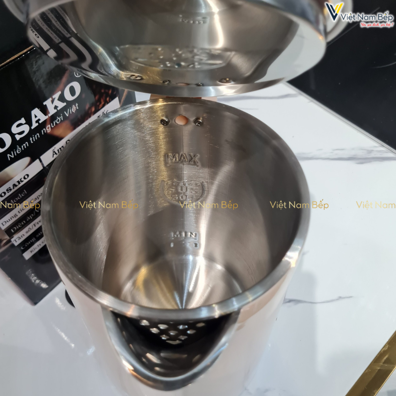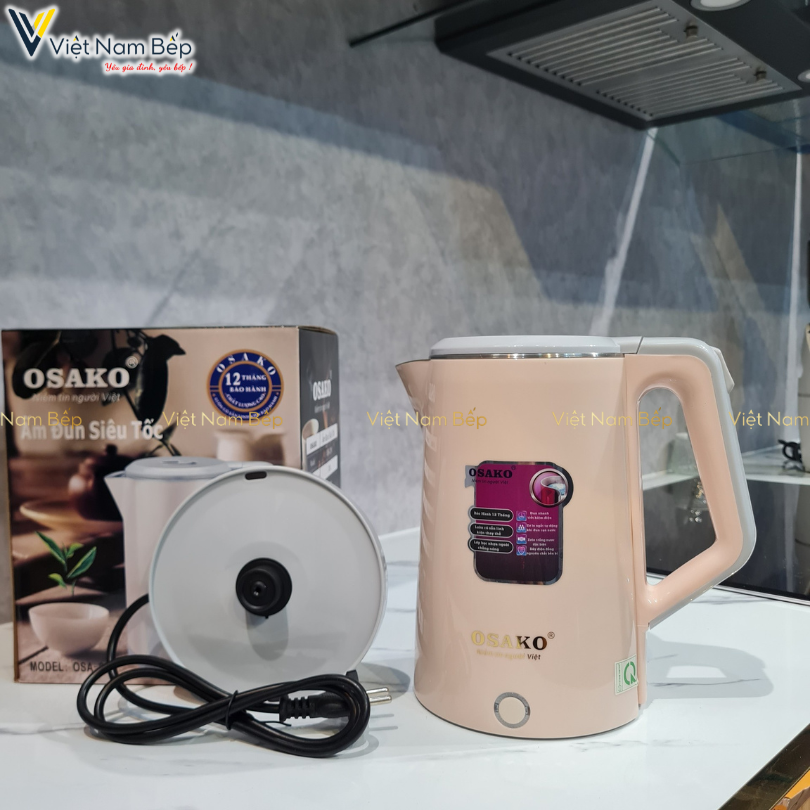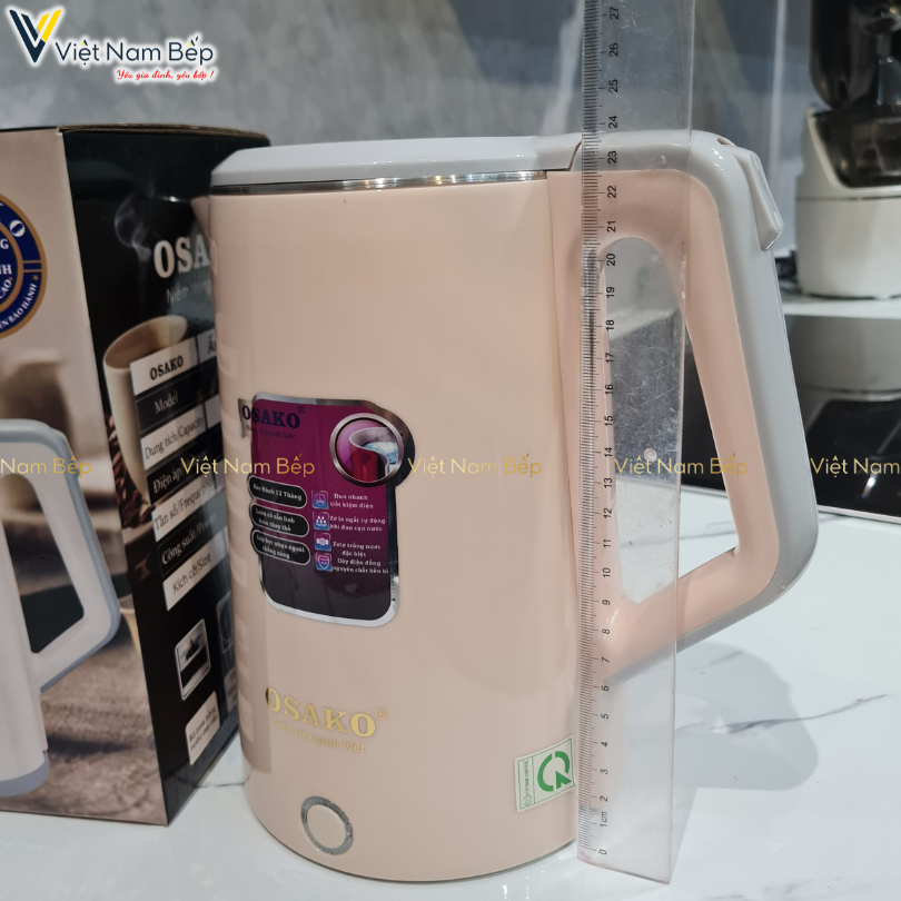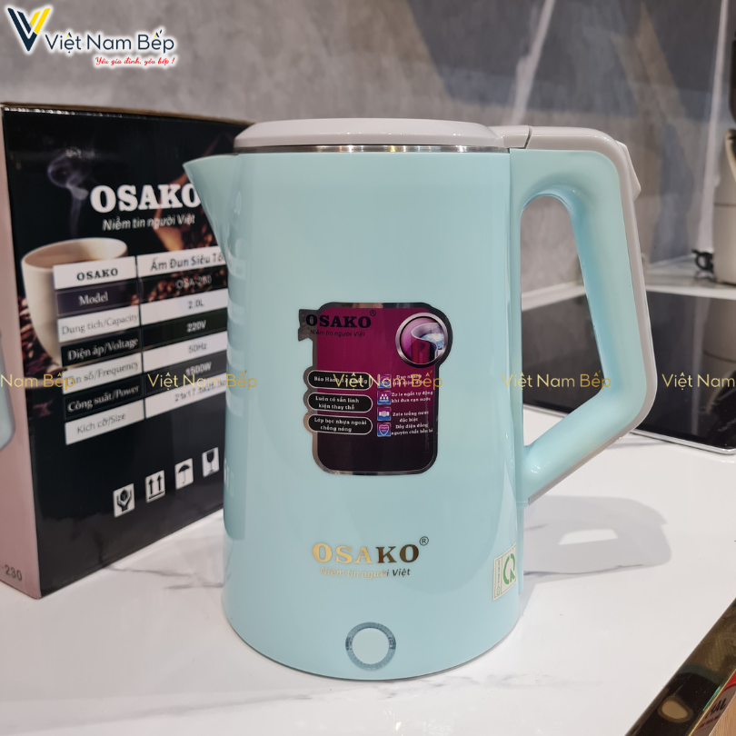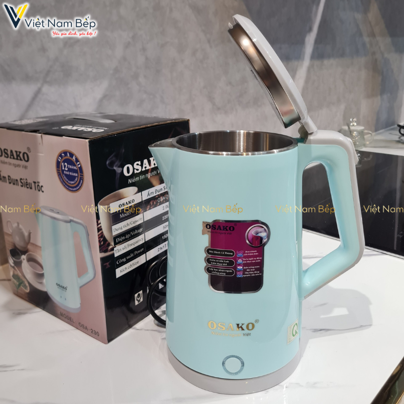 Ấm siêu tốc, ấm siêu tốc đun nước siêu nhanh Inox 2 lớp chống phỏng Osako OSA-230 dung tích 2L