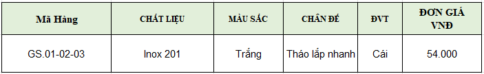 Mọi thông tin về sản phẩm được thể hiện rõ qua bảng sau: