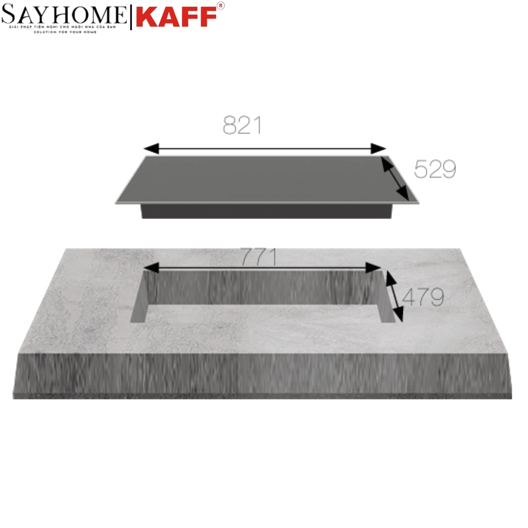 • Kích thước khoét đá: 771 x 479mm