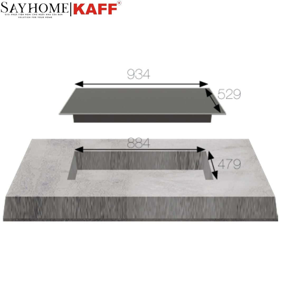 • Kích thước khoét đá: 884x479mm