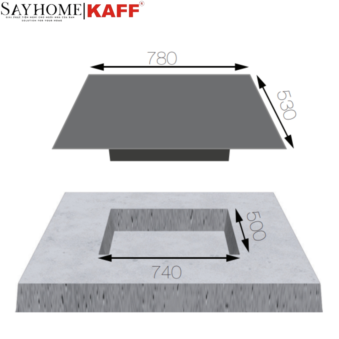 | Kích thước khoét đá | 740×500 mm |