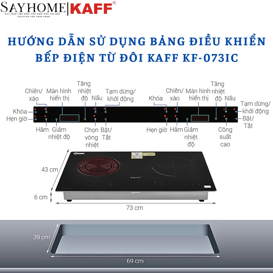 - Bếp điện từ thường xuyên ra mắt với nhiều mẫu mã mới nhằm tạo ra nhiều sự lựa chọn hơn cho khách hàng. Vì thế, với nhiều kiểu dáng, thiết kế cùng tích hợp nhiều tính năng nấu vượt trội, làm cho người tiêu dùng khó khăn hơn trong việc chọn mua cho gia đình mình một chiếc bếp điện từ ưng ý. Thấu hiểu được nỗi lo của khách hàng, SAYHOME đã tìm hiểu rất kỹ và giới thiệu đến gia đình mình sản phẩm Bếp điện từ đôi kết hợp KAFF KF-073IC một thiết kế hoàn toàn mới cùng những tính năng thông minh, thiết kế châu Âu hứa hẹn sẽ mang lại nhiều tiện ích hơn với giá thành hợp lý nhất trên thị trường bếp nhập khẩu hiện nay.