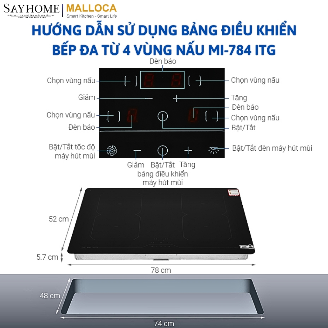 BẾP ĐA TỪ 4 VÙNG NẤU MI-784 ITG - HÀNG CHÍNH HÃNG MALLOCA