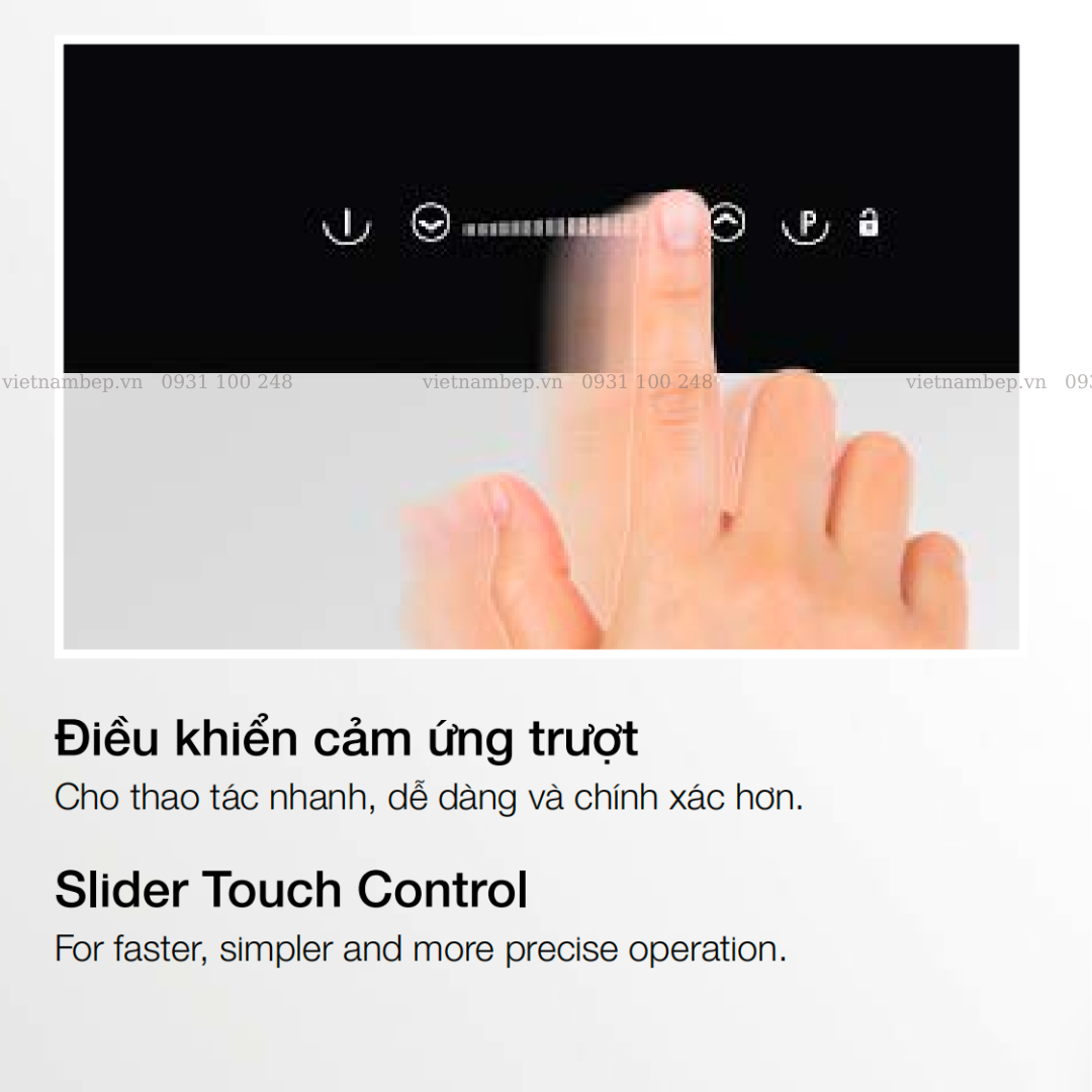 • 3 vùng nấu điện ( bếp hồng ngoại 3 ): + Vùng bên trái: Ø140/210/270 mm - 1,05/1,95/2,7 kW + Vùng sau bên phải: Ø140 mm - 1,2 kW + Vùng trước bên phải: Ø180 mm - 1,8 kW • Mặt gốm thủy tinh SCHOTT Ceran • Vát cạnh trước • Điều khiển trượt, 9 mức gia nhiệt • Hẹn giờ |