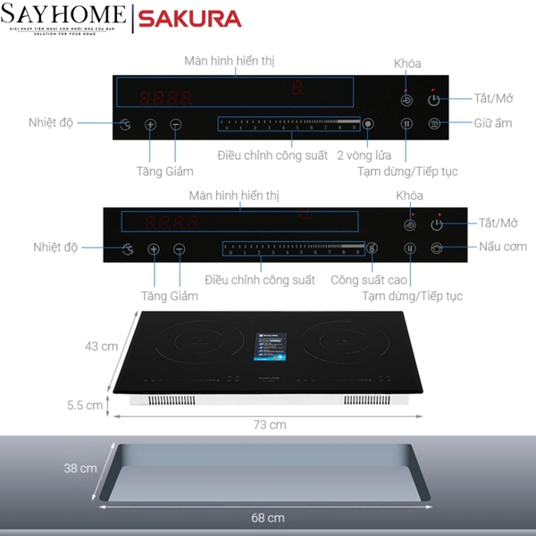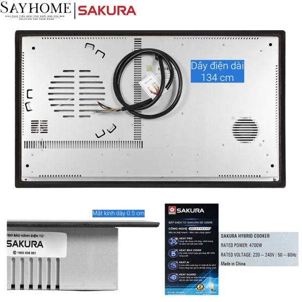 - Bếp điện từ Sakura SE-3260B được thiết kế để dành cho căn bếp hiện đại của bạn, với cách lắp âm gọn gàng và mặt kính sáng bóng, sang trọng.