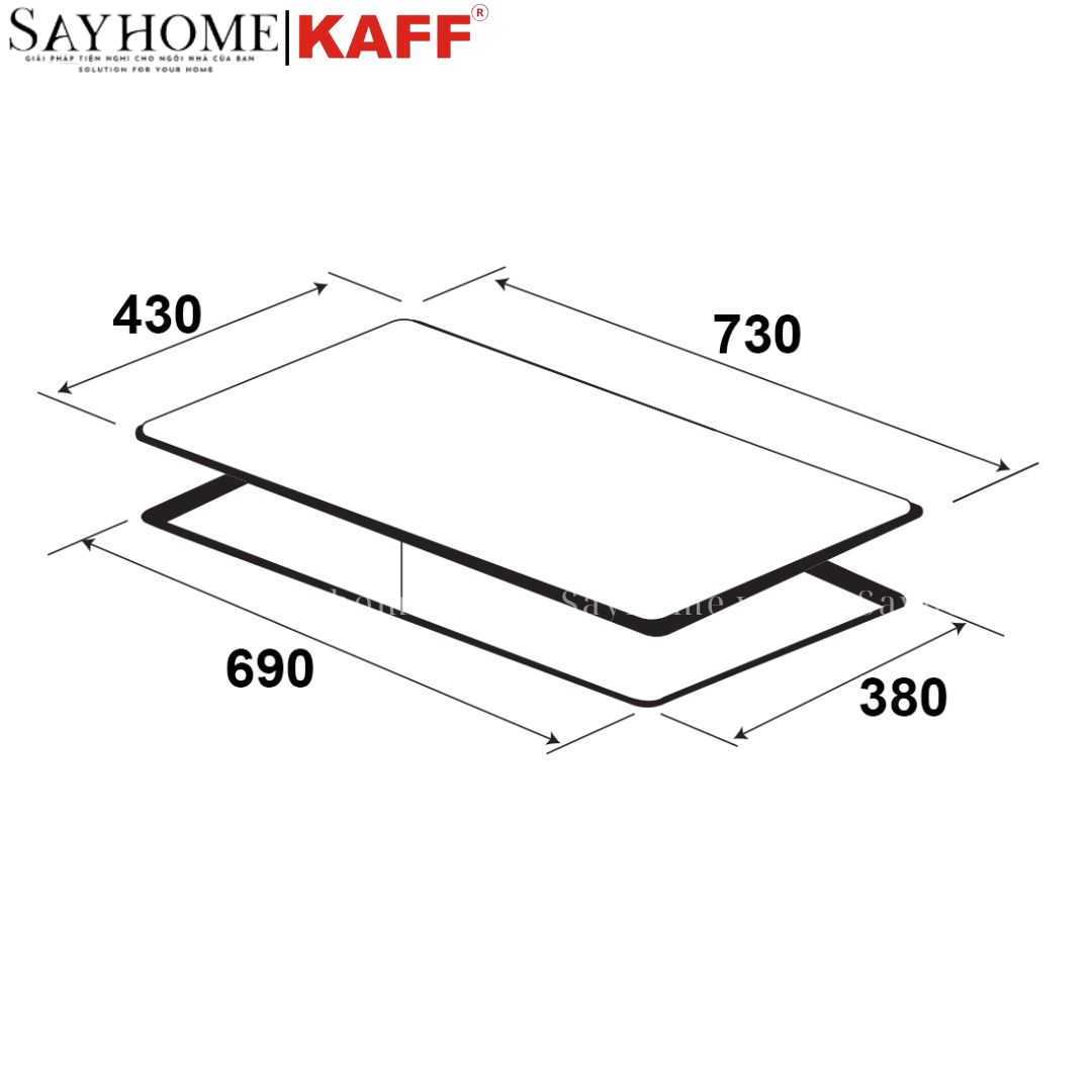 - Mặt kính Schott Ceran - Made in Germany, vát 2 cạnh trên dưới, bo viền kim loại 2 cạnh bên