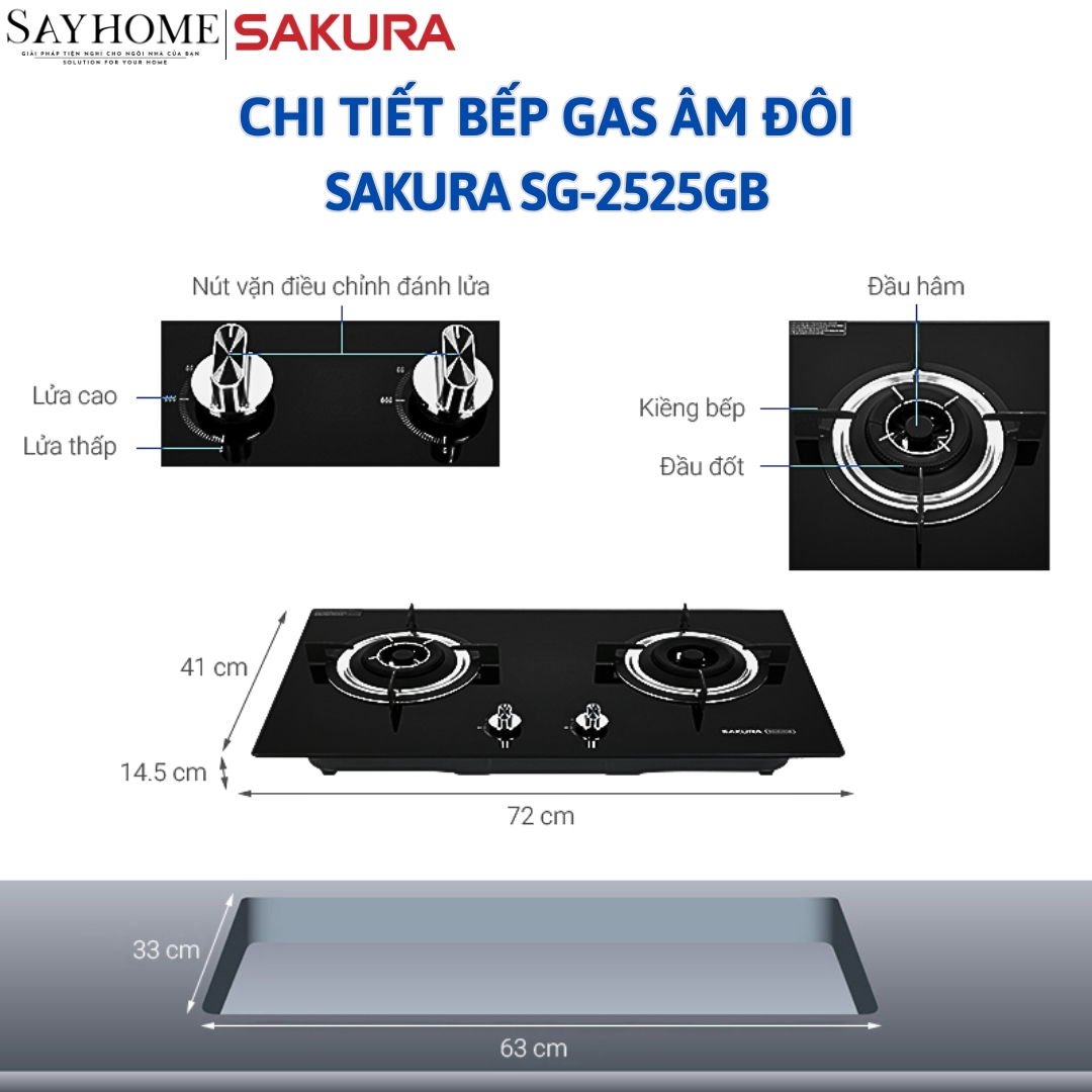 BẾP GAS ĐÔI SAKURA SG-2525GB - BẢO HÀNH 24 THÁNG