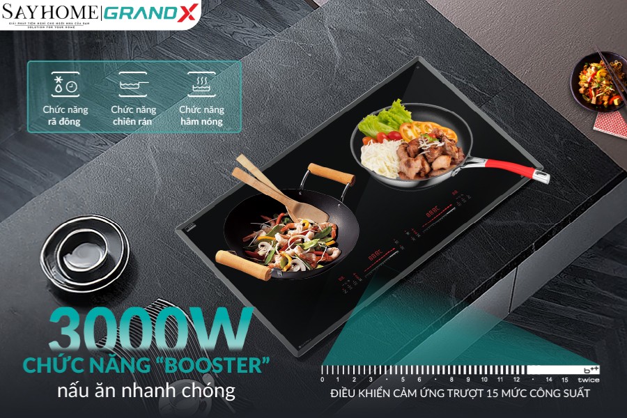 | Booster | 2 vùng nấu riêng biệt Max 3000W |