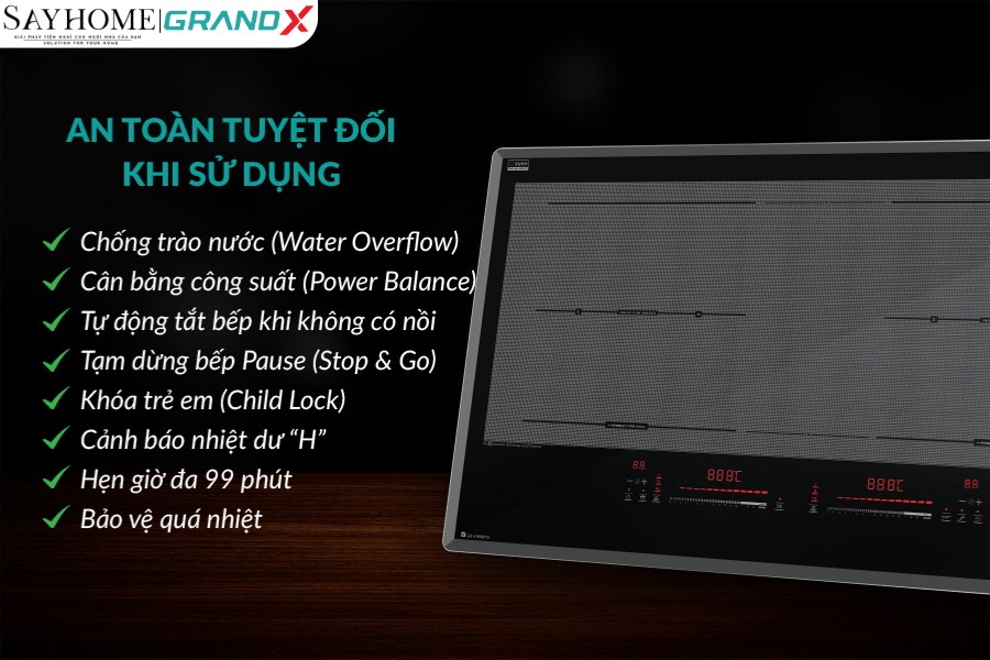 Bảo vệ quá nhiệt với cảm biến nhiệt độ tích hợp trong từng vùng nấu.