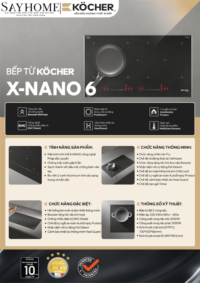 BẾP TỪ ĐÔI KOCHER X-NANO 6 - BẢO HÀNH MẶT KÍNH BẾP 10 NĂM