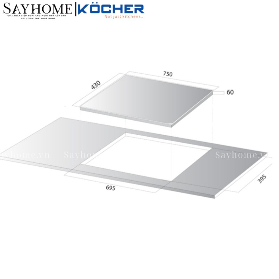 | Kích thước khoét lỗ | 695x395mm |