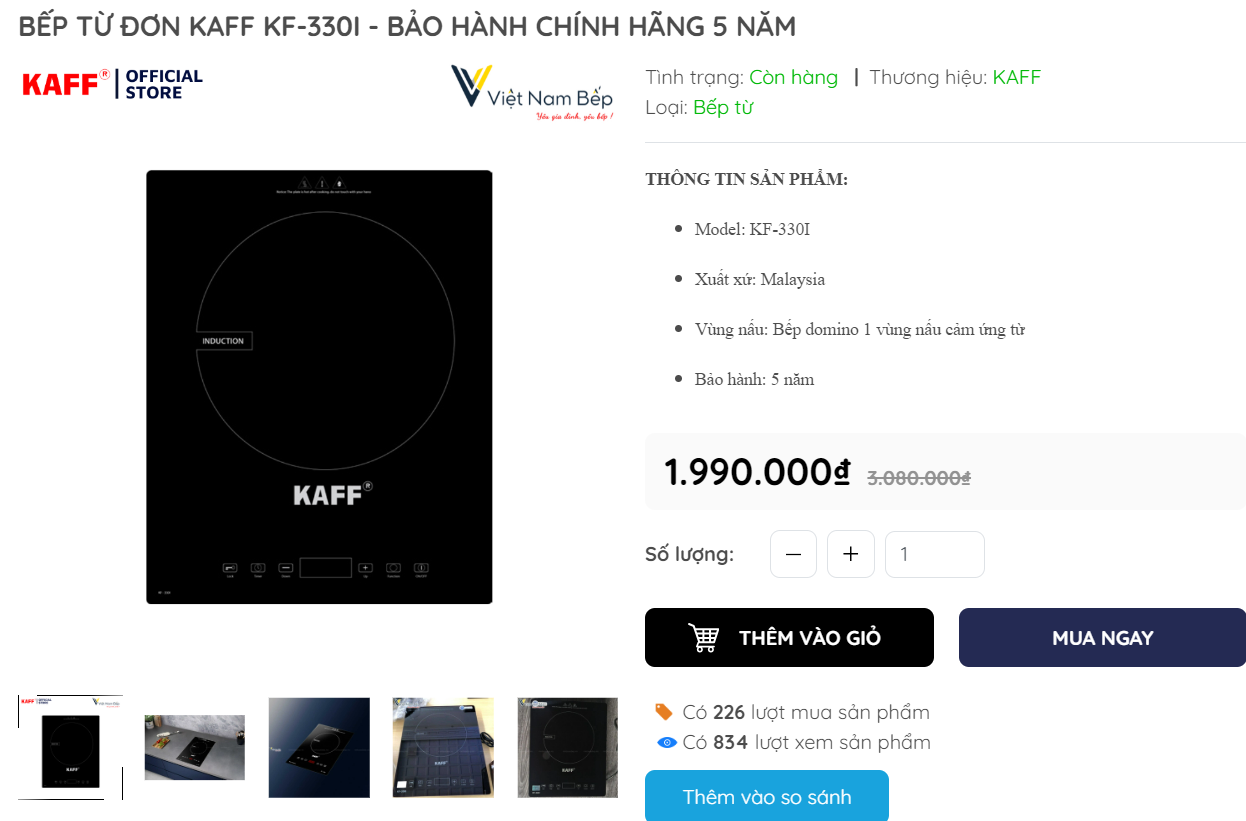 Bếp từ đơn hiện nay bán chạy tại Việt Nam Bếp là bếp từ đơn KAF KF-330I