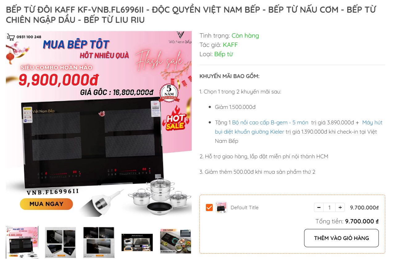 Bếp từ đôi hiện nay bán chạy tại Việt Nam Bếp là bếp từ KAFF KF-VNB.