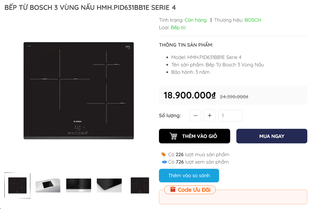 Bếp từ 3 vùng hiện nay bán chạy tại Việt Nam Bếp là bếp từ Bosch HMH.PID631BB1E SERIE 4.