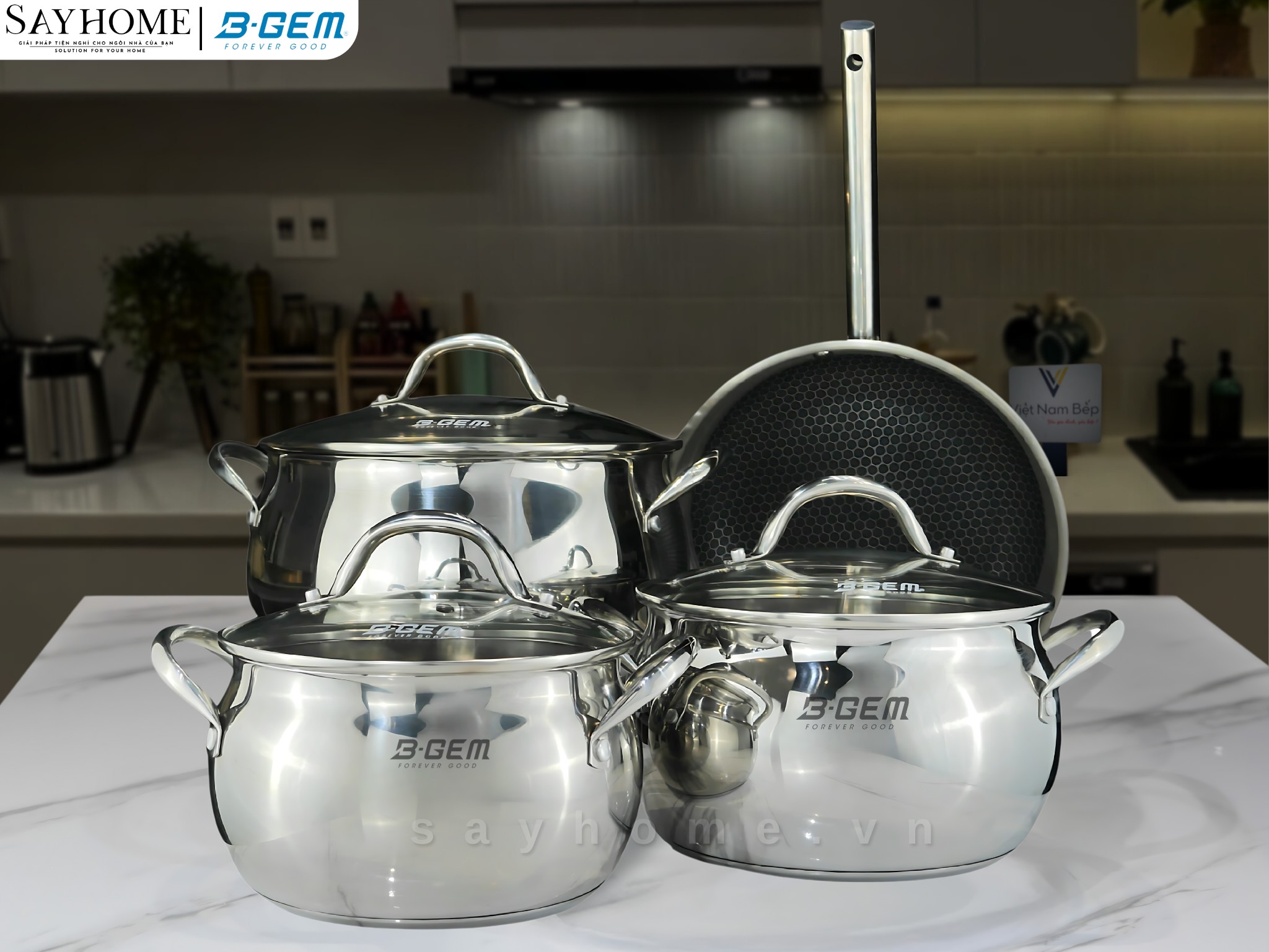 Mua Bộ nồi Inox chính hãng ở đâu luôn là câu hỏi mà người tiêu dùng thắc mắc khi có ý định mua một bộ nồi inox chất lượng chính hãng B-GEM. Hiện nay Sayhome - đại diện phân phối thiết bị gia dụng B-GEM uy tín với đội ngũ nhân viên chuyên nghiệp, am hiểu về sản phẩm, đội ngũ kỹ thuật lành nghề, có thể giải đáp mọi thắc mắc về những vấn đề " nhà mình" đang quan tâm với dịch vụ bảo hành, lắp đặt hậu mãi ân cần!