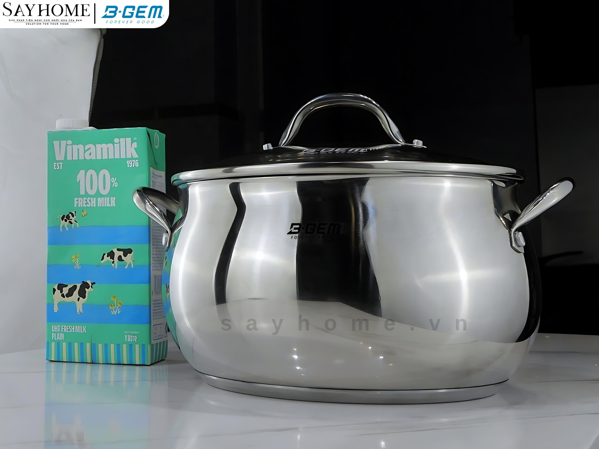 Bộ nồi B-Gem Belly inox 304 cao cấp có thiết kế sang trọng với màu inox sáng bóng, giúp nâng tầm không gian bếp của gia đình. Kiểu dáng sang trọng nhưng vẫn mang cảm giác gần gũi cho người dùng Việt, giúp bạn nấu nướng thoải mái trên tất cả các loại bếp. Hãy cùng Sayhome - Solution for your home khám phá xem sản phẩm này có điểm gì nổi bật trong bài viết dưới đây nhé!