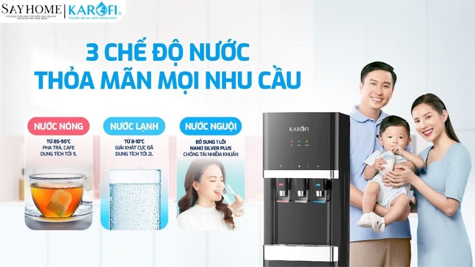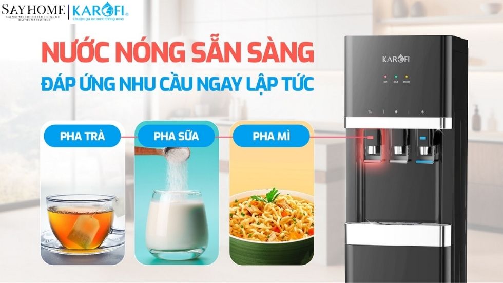 Mua cây nước nóng lạnh KAROFI chính hãng ở đâu luôn là câu hỏi mà người tiêu dùng thắc mắc khi có ý định mua cây nước nóng lạnh mới chất lượng chính hãng KAROFI. Hiện nay SAYHOME - đại diện phân phối KAROFI uy tín với đội ngũ nhân viên chuyên nghiệp, am hiểu về sản phẩm, đội ngũ kỹ thuật lành nghề, có thể giải đáp mọi thắc mắc về những vấn đề " nhà mình" đang quan tâm cùng dịch vụ lắp đặt hậu mãi ân cần!