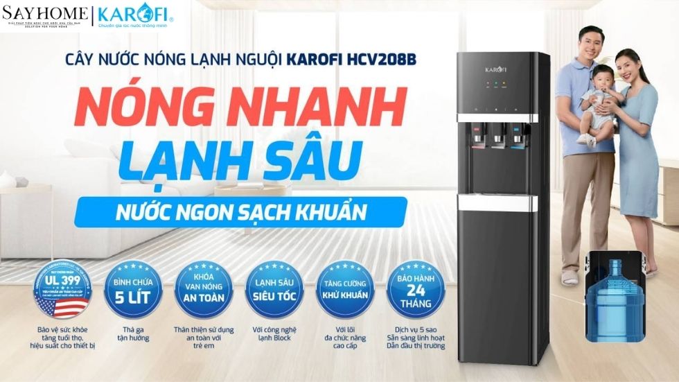 CÂY NƯỚC NÓNG LẠNH NGUỘI KAROFI HCV208B: NÓNG NHANH - LẠNH SÂU - NƯỚC NGON SẠCH KHUẨN