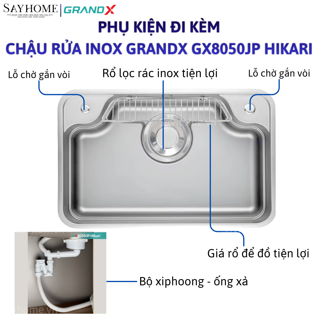 CHẬU RỬA CHÉN INOX GRANDX GX8050JP HIKARI - BẢO HÀNH CHÍNH HÃNG 10 NĂM