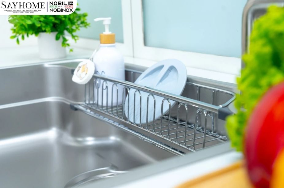 - Rổ inox là nơi úp chén bát hoặc thực phẩm giúp không gian bếp luôn khô ráo và gọn gàng.