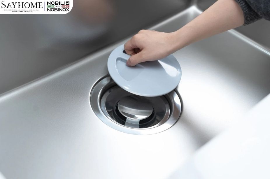 - Đi cùng là hệ thống 3 lớp lọc rác thông minh, giữ lại trọn vẹn cặn bã và thức ăn thừa, bảo vệ đường ống thoát nước luôn thông suốt, tránh tắc nghẽn.