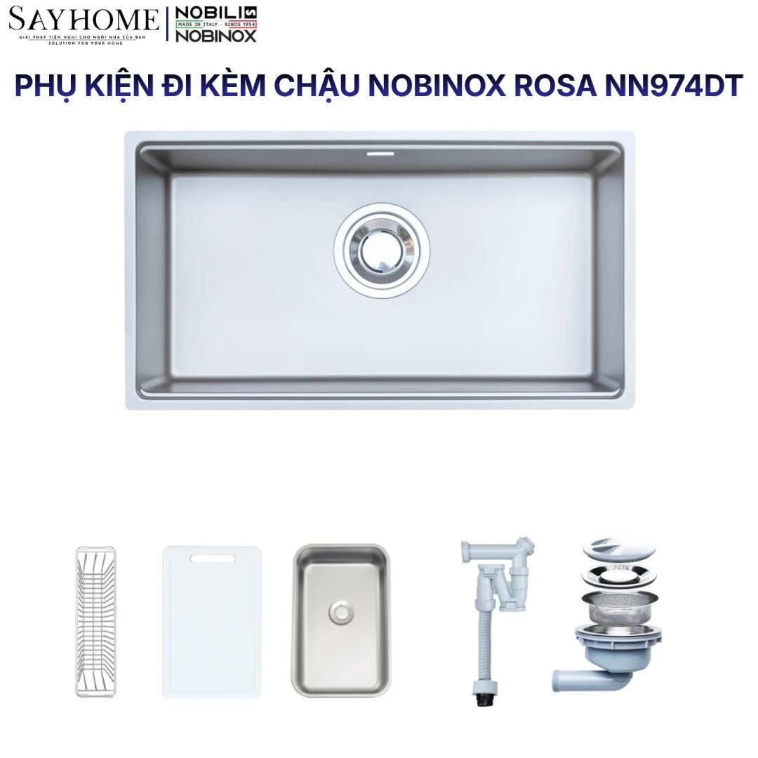 - Nobinox ROSA NN974DT được trang bị thêm bộ phụ kiện bao gồm thớt nhựa, khay phụ và rổ inox mang đến giải pháp toàn diện cho mọi nhu cầu sử dụng.
