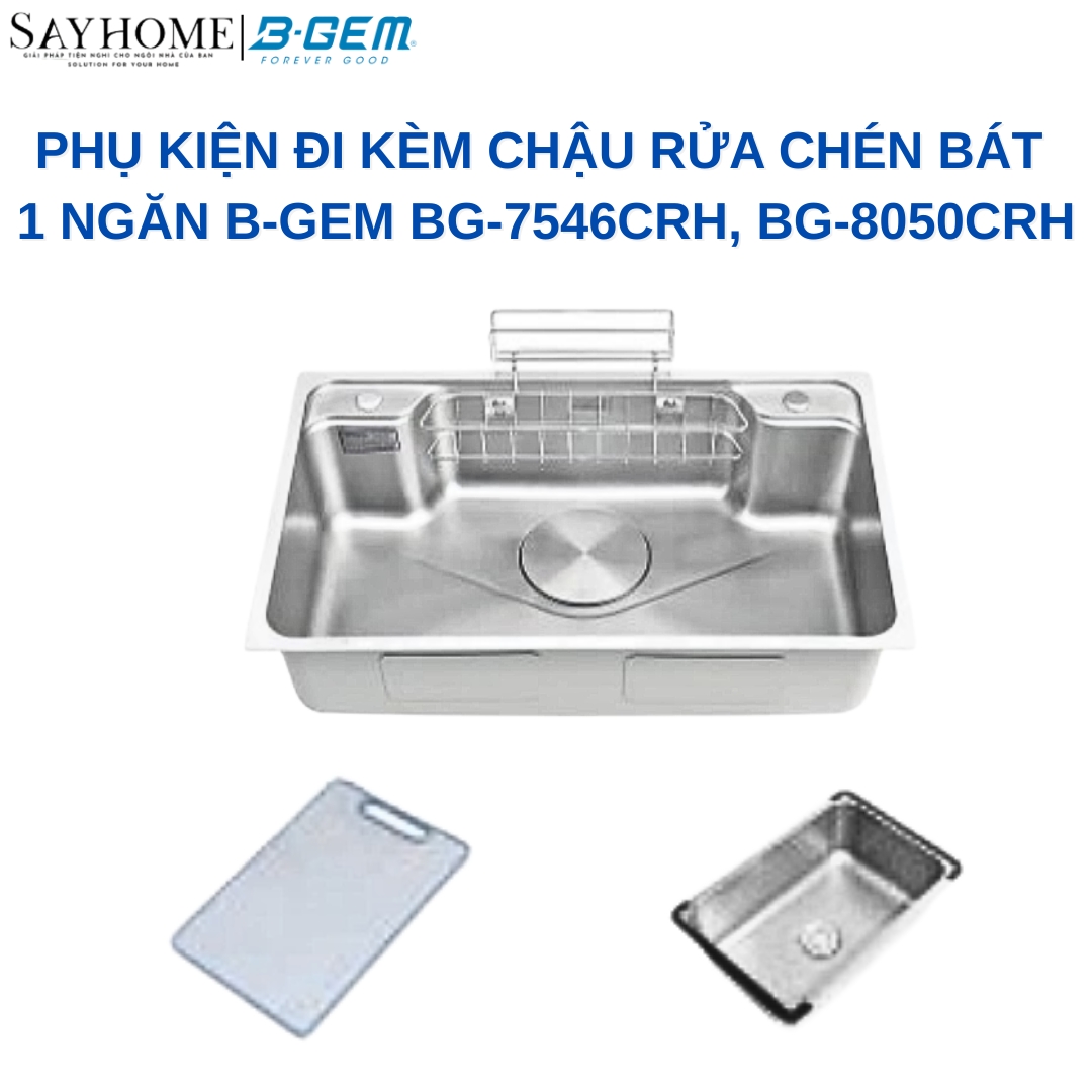 CHẬU RỬA BÁT INOX B-GEM BG-7546CRH, BG-8050CRH - HÀNG CHÍNH HÃNG B-GEM