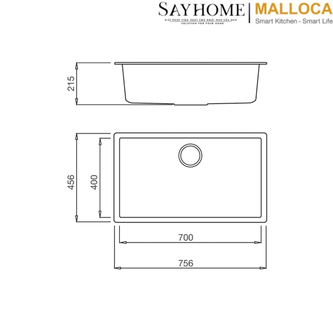 CHẬU RỬA ĐÁ 1 NGĂN MALLOCA ZEN K-13073- HÀNG CHÍNH HÃNG MALLOCA - BẢO HÀNH 3 NĂM