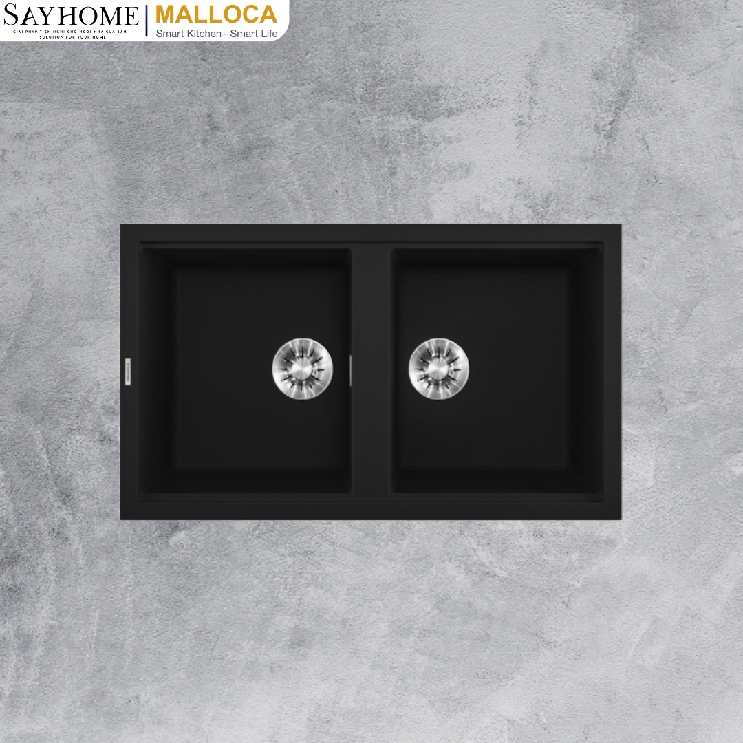 CHẬU RỬA ĐÁ 2 NGĂN MALLOCA GRANITE NANO BLACK K-45086 - BẢO HÀNH CHÍNH HÃNG 3 NĂM