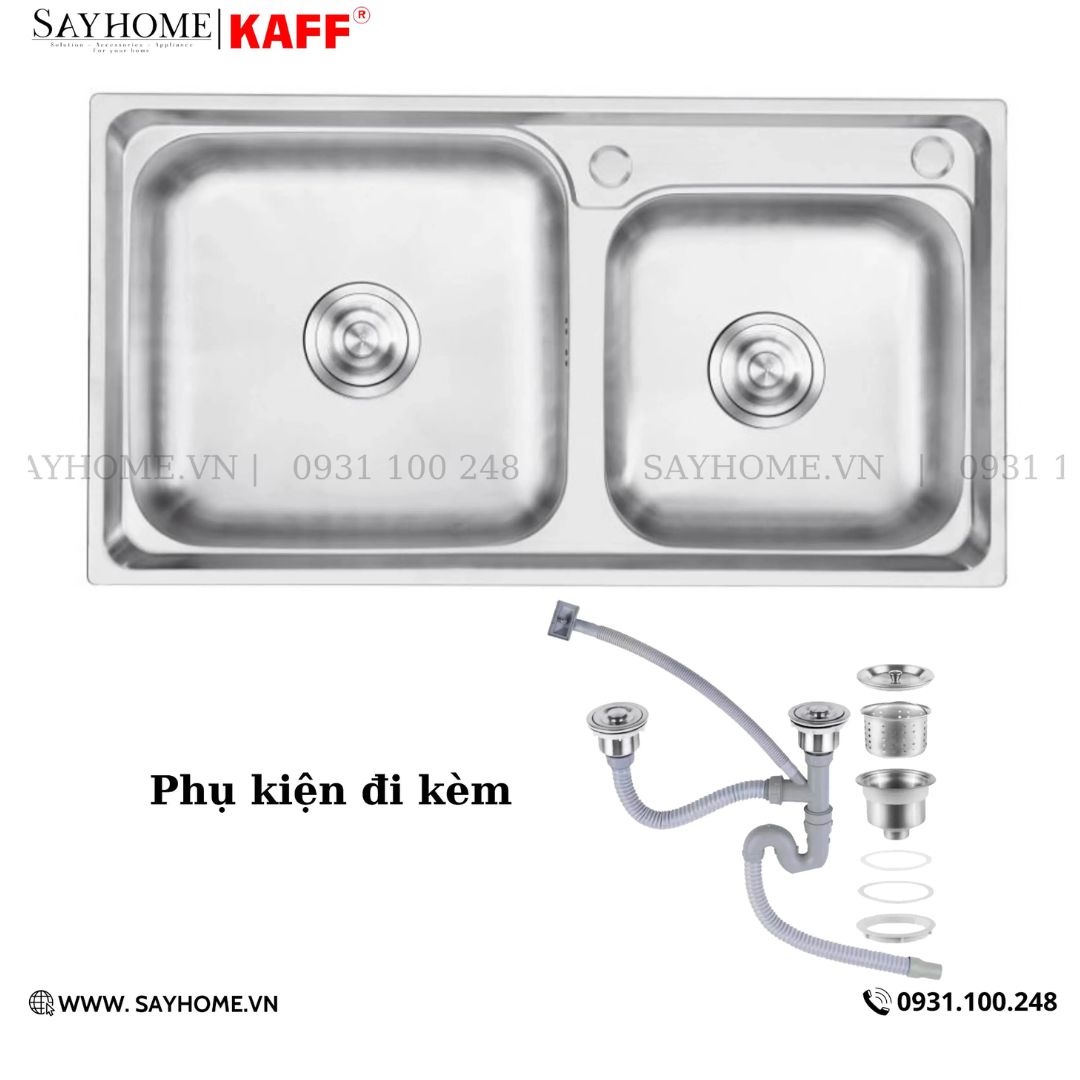 Lắp âm mặt đá Chậu rửa inox KAFF KF-P8143/8143 2 ngăn