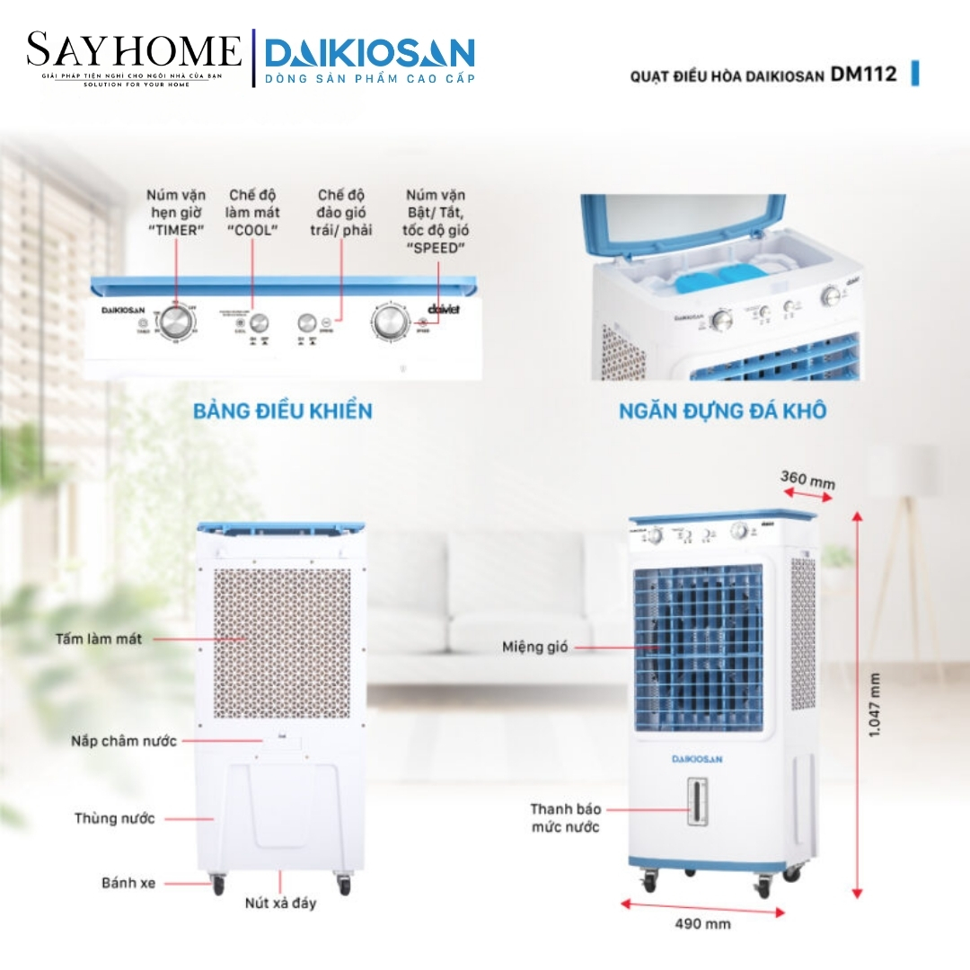 Quạt điều hoà Daikiosan DM112 đang khẳng định vị thế của mình trên thị trường và trở thành sự lựa chọn lý tưởng cho nhiều gia đình và không gian làm việc. Hy vọng rằng những thông tin trong bài viết này sẽ giúp bạn hiểu rõ hơn về sản phẩm và đưa ra quyết định sáng suốt khi lựa chọn máy làm mát cho gia đình mình.