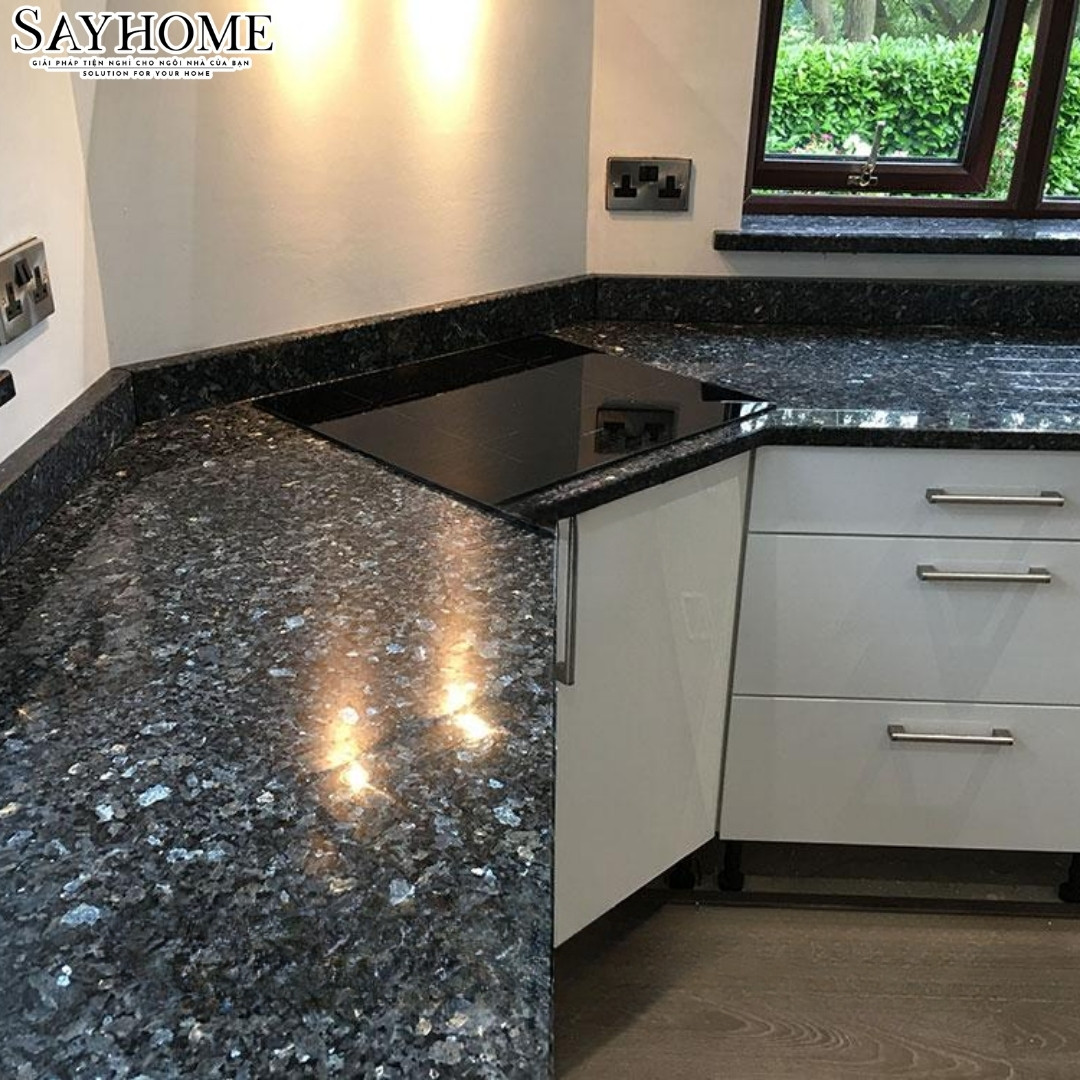 Mặt bàn bếp (Countertop): Với vẻ đẹp sang trọng và khả năng chịu nhiệt tốt, đá granite xà cừ ánh xanh là lựa chọn lý tưởng cho các mặt bàn bếp. Đặc biệt, bề mặt đá dễ dàng vệ sinh, giúp bạn tiết kiệm thời gian bảo dưỡng.