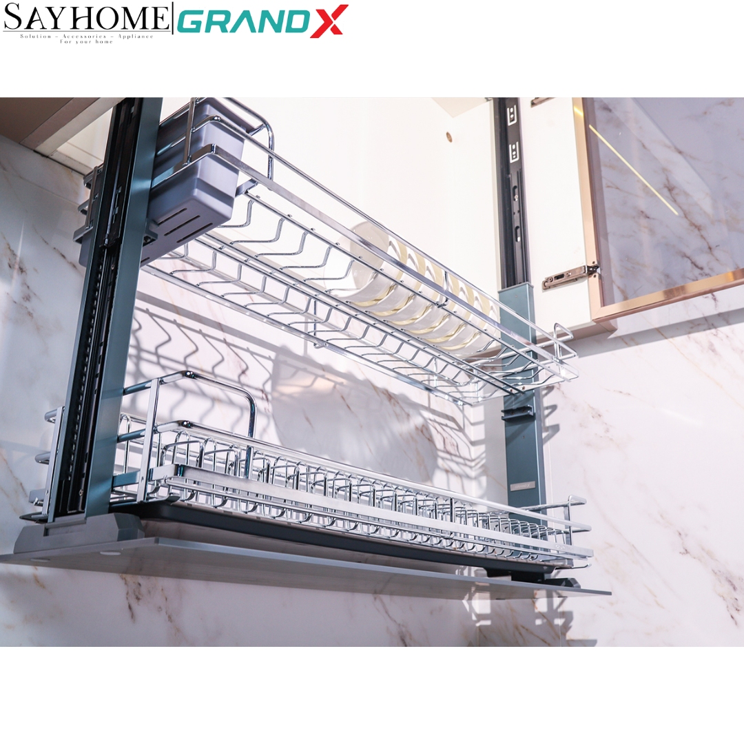 Giá bát đĩa nâng hạ điện GrandX nan Oval XL 80EM,90EM được thiết kế hiện đại, giúp không gian bếp sang trọng, hỗ trợ mọi người trong gia đình dễ dàng sử dụng.