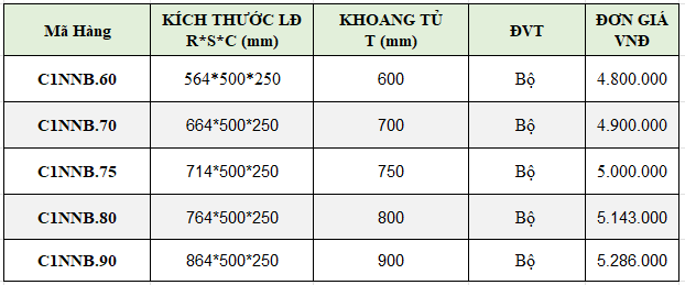 | Mã hàng | C1NNB.60, C1NNB.70, C1NNB.75, C1NNB.80, C1NNB.90 |