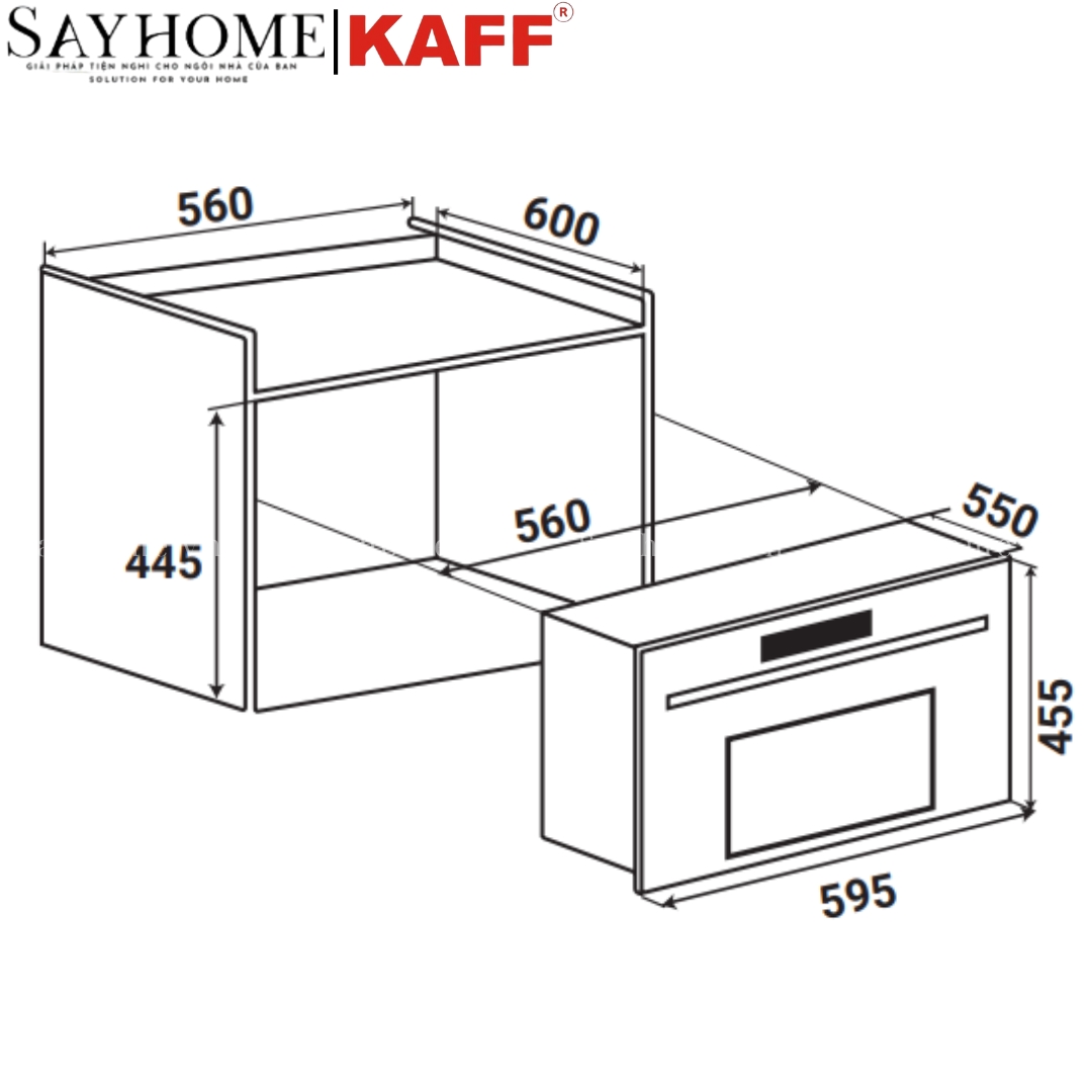 • Kích thước âm tủ: 560R × 445Cx 600S mm