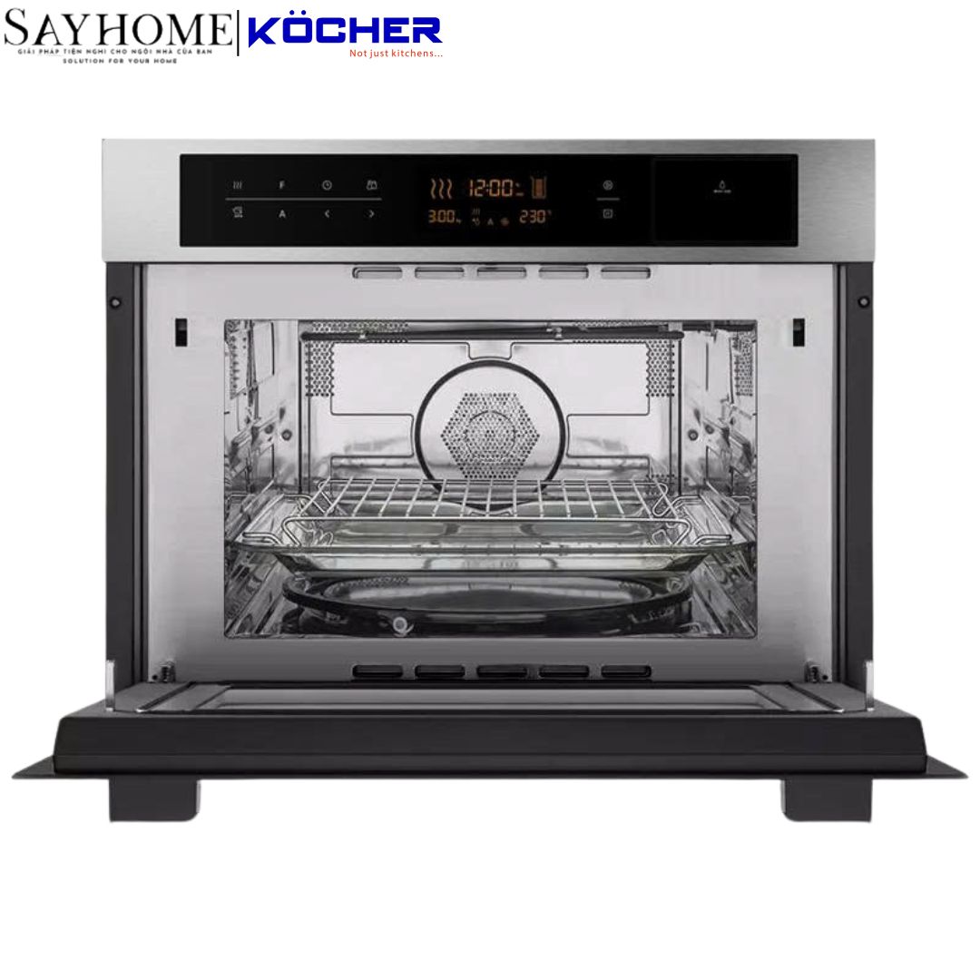 Lò nướng âm tủ tích hợp lò hấp và vi sóng 3 trong 1 Kocher KMEU-1050 vừa là 1 chiếc lò nướng, vừa là một chiếc lò vi sóng, lại là một chiếc lò hấp! vừa tiện dụng, vừa đa năng, lại tiết kiệm tiền mua 3 thiết bị cho gia đình bạn. Lò được thiết kế bề mặt kính cường lực 3 lớp, bảng điều khiển kỹ thuật số Digital, phối inox 304 tạo nên vẻ thanh lịch theo phong cách Châu Âu.