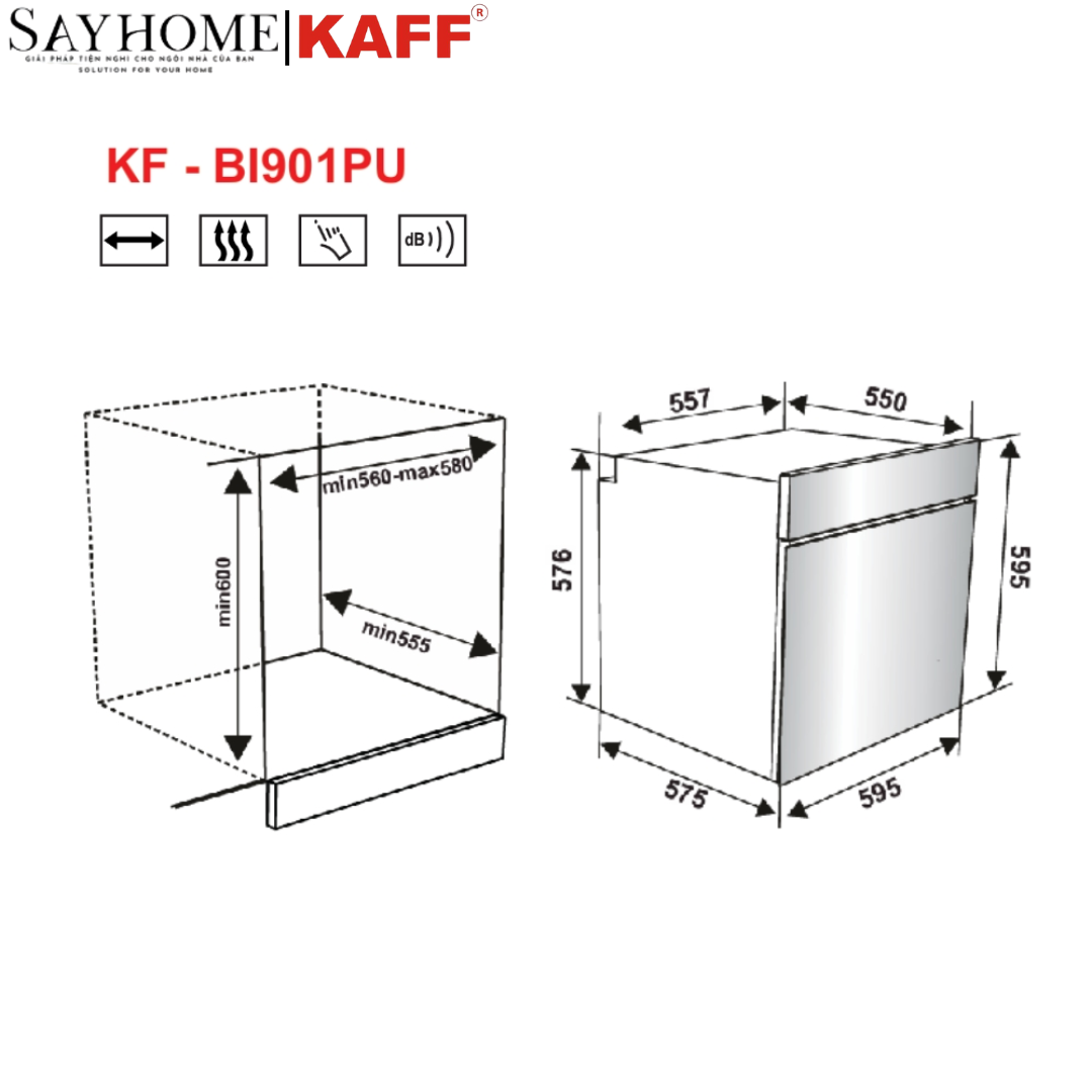 Hiệu Suất và Tiết Kiệm Năng Lượng: Đạt tiêu chuẩn tiết kiệm năng lượng A++ của châu Âu, lò nướng Kaff KF-BI901PU không chỉ giảm tiêu thụ điện năng mà còn hoạt động với độ ồn tối đa chỉ 50 Hz, cực kỳ yên tĩnh. Đ ồn quạt làm mát hướng trục chỉ 49,2 Hz, đảm bảo môi trường bếp luôn thoải mái.
