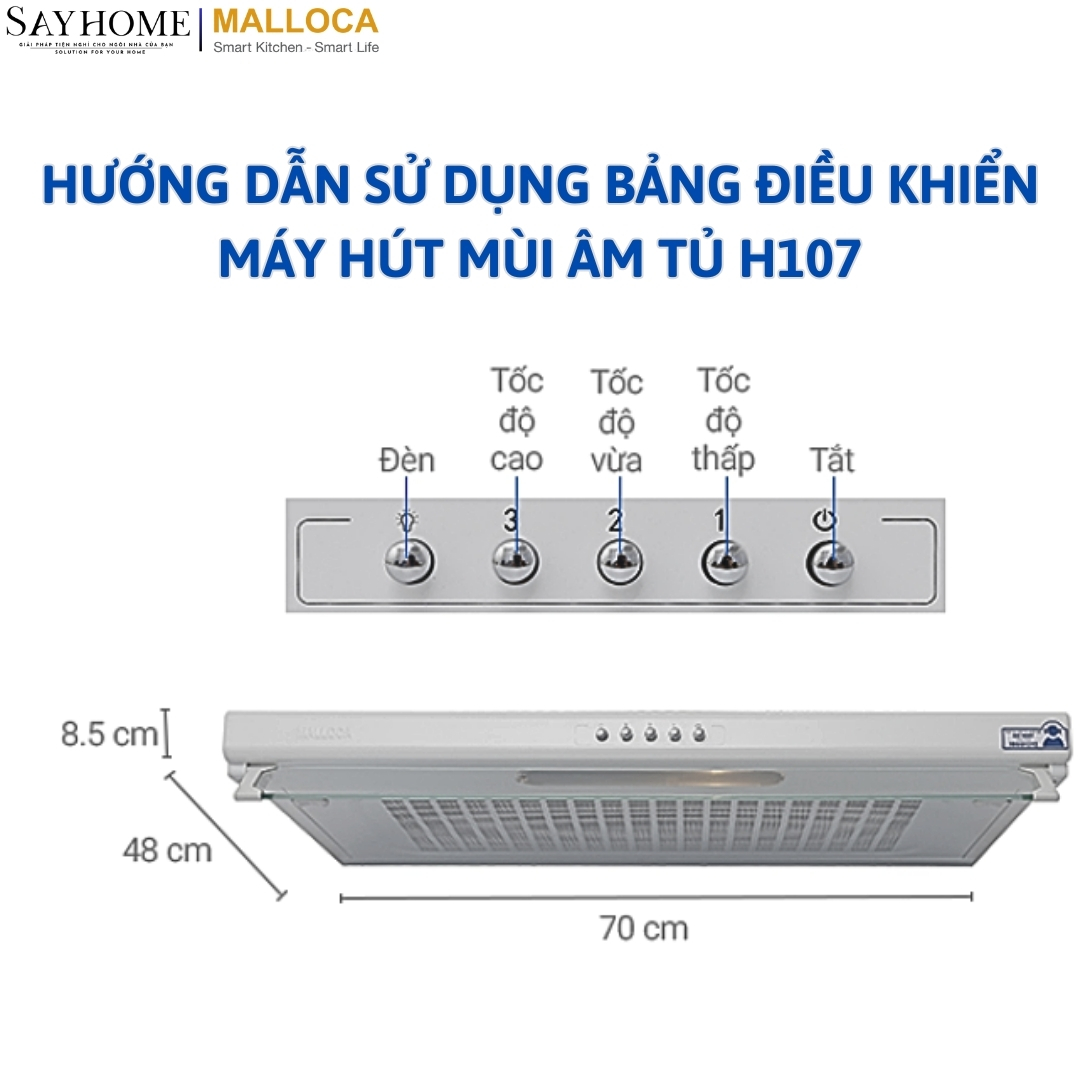 MÁY HÚT KHÓI KHỬ MÙI ÂM TỦ H107 - HÀNG CHÍNH HÃNG MALLOCA