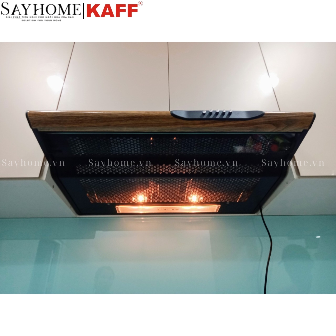 - Máy hút mùi cổ điển vân gỗ KAFF KF-700W có kích thước 70cm nhỏ gọn được lắp đặt ngay trên phần bếp nấu của không gian nấu nướng của gia đình bạn. Máy thích hợp với mọi không gian bếp.