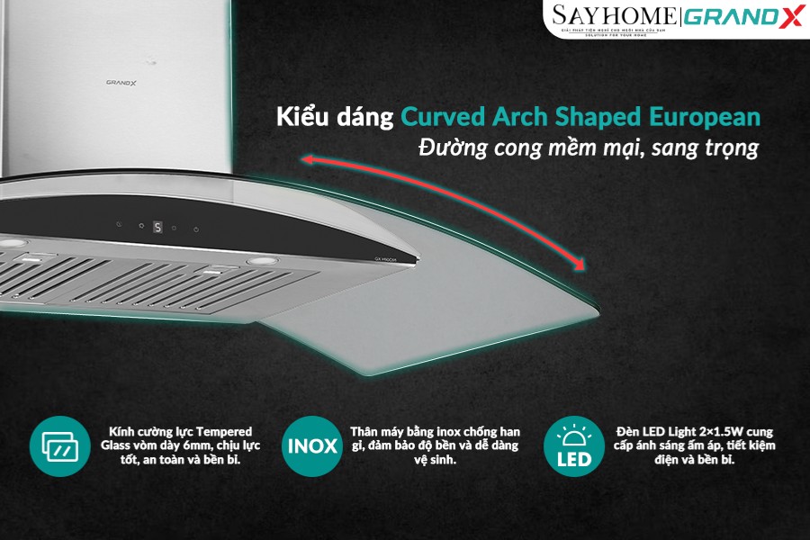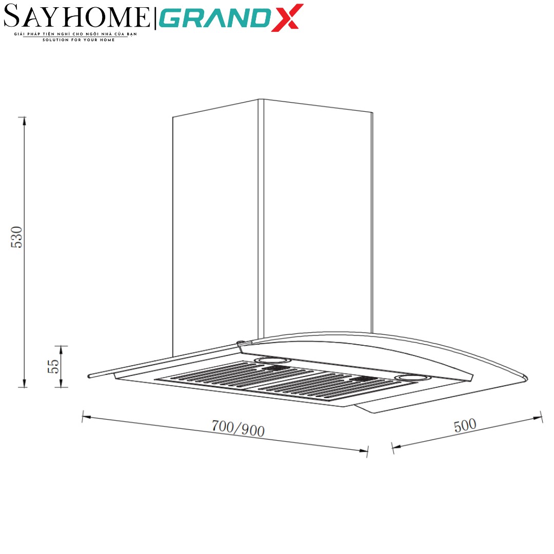 MÁY HÚT MÙI KÍNH CONG GRANDX GX H70C55/ GX H90C55 - HÀNG CHÍNH HÃNG