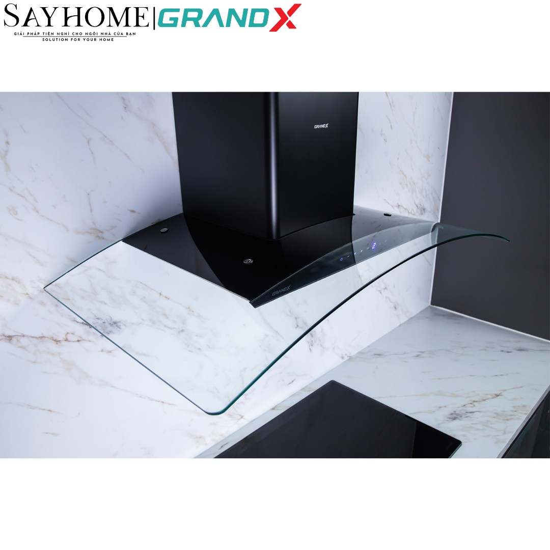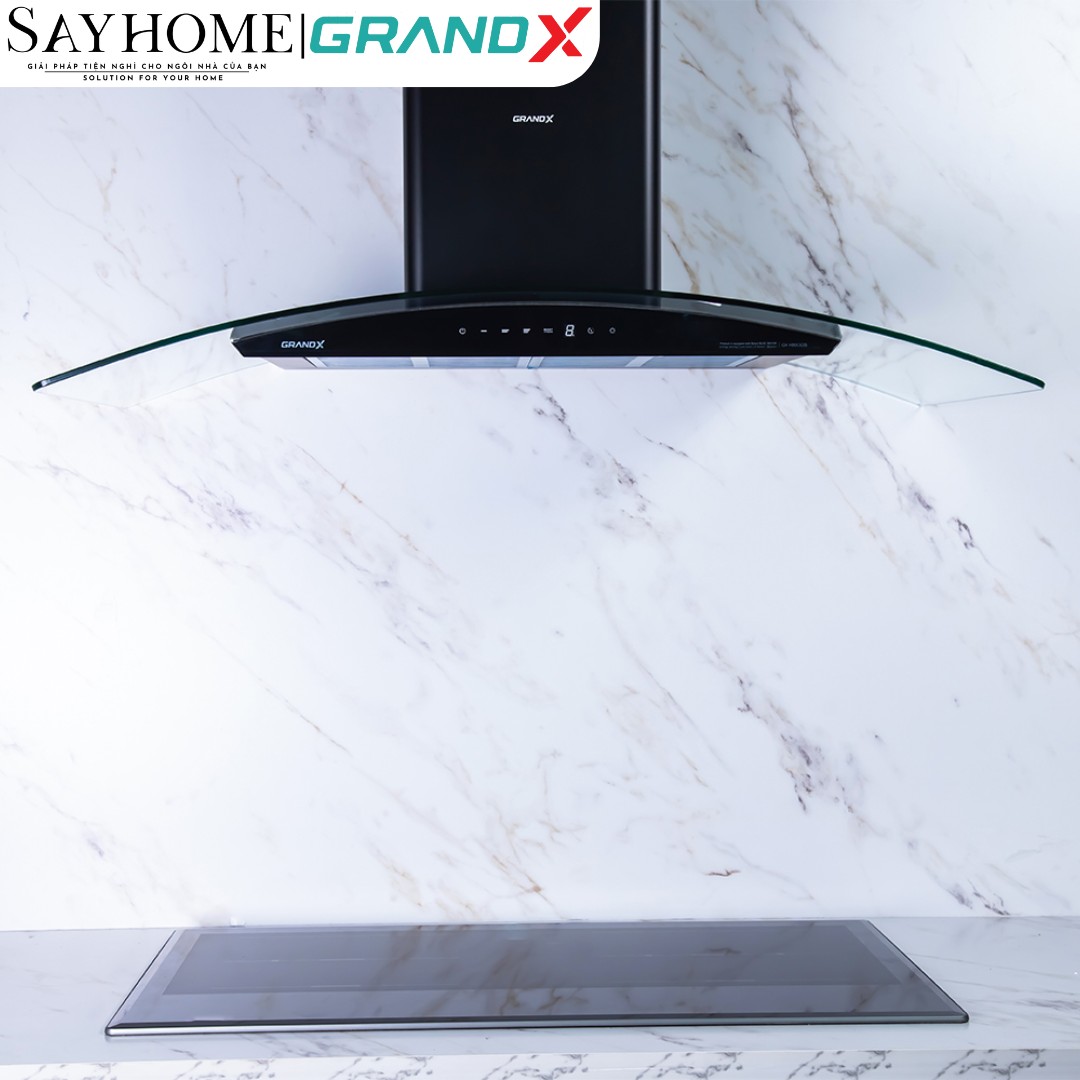 HÌNH ẢNH THỰC TẾ CỦA MÁY HÚT MÙI KÍNH CONG, MÀU ĐEN GRANDX GX H70C62B/ GX H90C62B