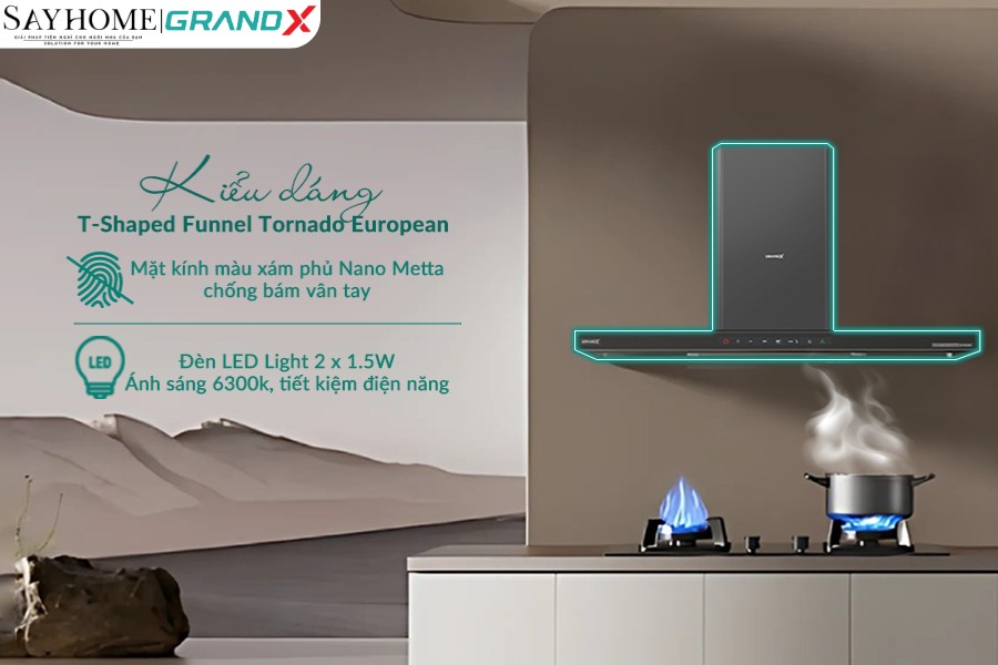 MÁY HÚT MÙI KÍNH TOA, ÁP TƯỜNG, MÀU XÁM TITAN GRANDX GX H70C69G/ GX H90C69G - HÀNG CHÍNH HÃNG