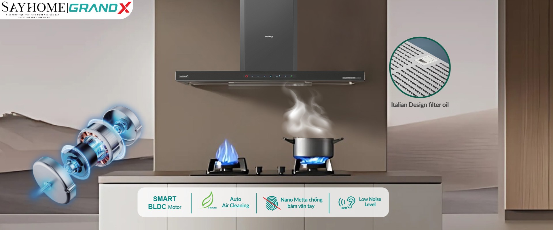 Mua máy hút mùi chính hãng ở đâu luôn là câu hỏi mà người tiêu dùng thắc mắc khi có ý định mua một chiếc máy hút mùi chất lượng chính hãng GRANDX. Hiện nay SAYHOME - đại diện phân phối GRANDX uy tín với đội ngũ nhân viên chuyên nghiệp, am hiểu về sản phẩm, đội ngũ kỹ thuật lành nghề, có thể giải đáp mọi thắc mắc về những vấn đề " nhà mình" đang quan tâm cùng dịch vụ lắp đặt hậu mãi ân cần!